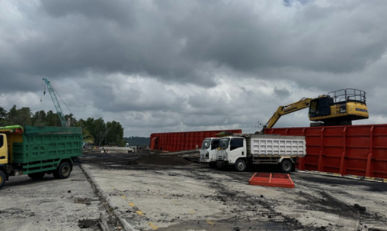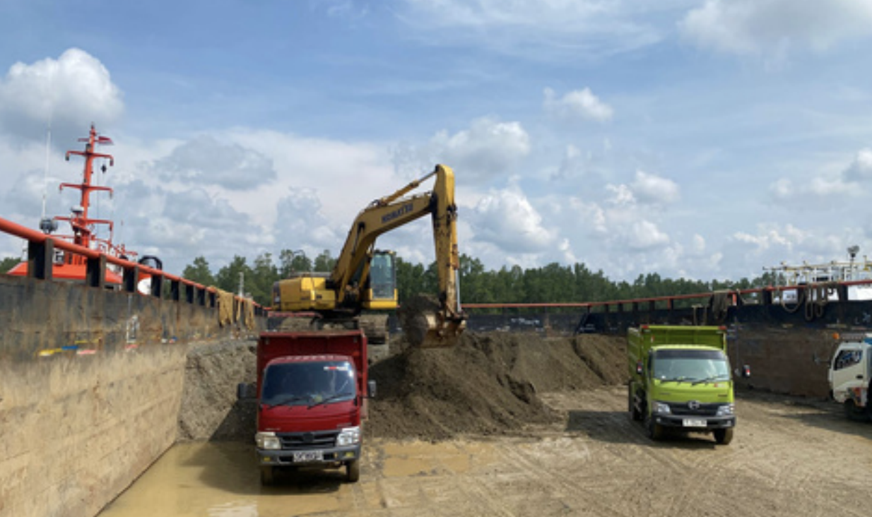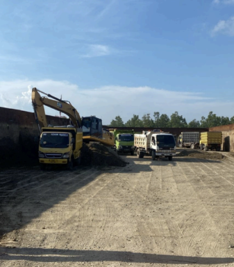 Pengelolaan muatan proyek dengan alat berat dan tenaga ahli.